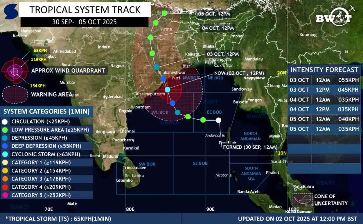 BWOT WEATHER- THE MOST ACCURATE WEATHER NEWS OF BANGLADESH মৌসুম বায়ুর বিদায় ও বৃষ্টিপাত এর বিদায় কবে?মৌসুম বায়ুর বিদায় ও বৃষ্টিপাত এর বিদায় কবে?দেশের উপর আবারও সক্রিয় হতে যাচ্ছে বৃষ্টি বলয় প্রবাহদেশের উপর আবারও সক্রিয় হতে যাচ্ছে বৃষ্টি বলয় প্রবাহসন্ধ্যা রাতের মধ্যেই উপকূল অতিক্রম করতে পারে সাধারণ ঘূর্ণিঝড়সন্ধ্যা রাতের মধ্যেই উপকূল অতিক্রম করতে পারে সাধারণ ঘূর্ণিঝড়সিস্টেম আপডেট ২ : নিন্মচাপ । আপডেট : ১লা অক্টোবর বিকেল ৩ টা ৪৫ মিনিট।সিস্টেম আপডেট ২ : নিন্মচাপ । আপডেট : ১লা অক্টোবর বিকেল ৩ টা ৪৫ মিনিট।২৪ ঘন্টার মধ্যে গভীর নিম্নচাপ ও ঘূর্ণীঝড়ের সম্ভাবনা২৪ ঘন্টার মধ্যে গভীর নিম্নচাপ ও ঘূর্ণীঝড়ের সম্ভাবনা Cyclone RADAR IMAGE RECENT POSTS Wind Map Model Data MJO Forecast Earthquake MOON RISE/SET Globe WEATHER পূর্বাভাস বৃষ্টিবলয় সতর্ক সংকেত Bangladesh Satellite Bay of Bengal Satellite Thunderstorm Calculator Solar Eclipse 2025 : Partial Eclipse on September 21–22Solar Eclipse 2025 : Partial Eclipse on September 21–22Hurricane Kiko Strengthens as Category 4 Storm, Tracking Toward HawaiiHurricane Kiko Strengthens as Category 4 Storm, Tracking Toward HawaiiTropical Storm Krosa Update – July 1, 2025, 3 PM UTCTropical Storm Krosa Update – July 1, 2025, 3 PM UTCSydney Weather: 3-Day Forecast of Sydney from Aug 1 to 3, 2025Sydney Weather: 3-Day Forecast of Sydney from Aug 1 to 3, 2025Brisbane 7-Day Forecast for July 17 to July 23, 2025Brisbane 7-Day Forecast for July 17 to July 23, 2025 Check Emergency Flood Repair Companies – Best 50 in the World Follow Us on Facebook October 2025 S S M T W T F 123 45678910 11121314151617 18192021222324 25262728293031 « Sep